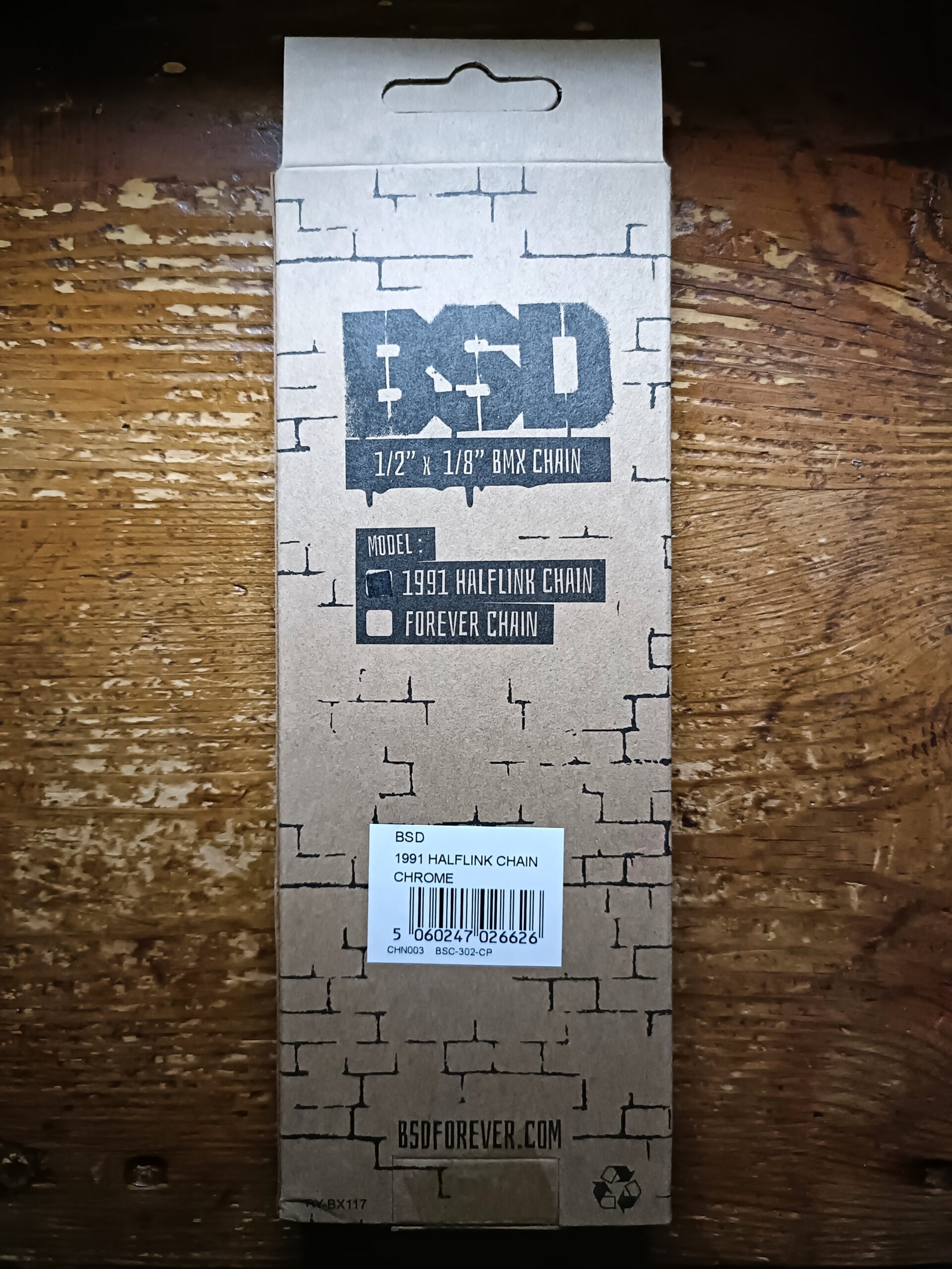 A very durable half link BMX chain with BSD logos stamped on the plates.